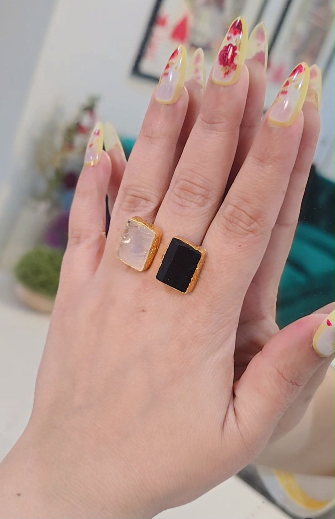 This Black Tourmaline & Clear Quartz ring by Atty Mann is more than just a statement—it’s your daily shield and energy amplifier. Black Tourmaline absorbs negativity and protects your aura, while Clear Quartz magnifies intentions, bringing balance, focus, and spiritual alignment.